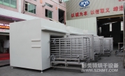 (1)烘干工作時間12小時,烘干溫度120℃可調(diào)。預(yù)計產(chǎn)能為600Kg/車。產(chǎn)品采用托盤平鋪方式放置。