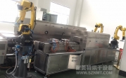 2、本生產(chǎn)線分為機械手移載產(chǎn)品至菱形線、取樣與安全防護(hù)門、菱形輸送線、預(yù)熱爐、產(chǎn)品出爐溫控監(jiān)測及位置檢測、噴硅系統(tǒng)、視覺檢測系統(tǒng)、流量監(jiān)測系統(tǒng)、NG排除機構(gòu)、機械手移載至網(wǎng)帶輸送線、取樣與安全防護(hù)門、網(wǎng)帶輸送線、固化爐、機械手移載至包裝線、取樣與安全防護(hù)門;系統(tǒng)分為兩種生產(chǎn)模,硅化線和非硅化。